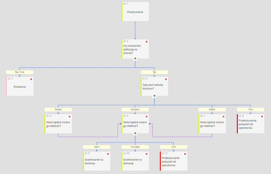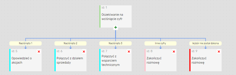 Oto jak wygląda struktura IVR w edytorze Robot głosowy: