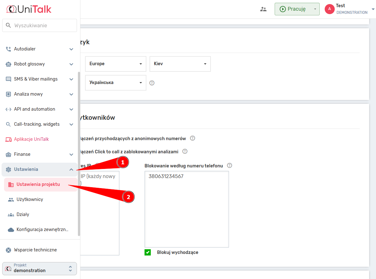 - Zaloguj się do swojego projektu w Panelu Klienta UniTalk.