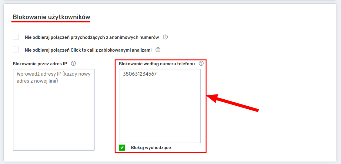 - Znajdź pole „Blokowanie według numeru telefonu” i wpisz tam numery, które chcesz zablokować.