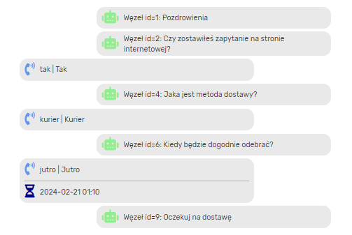 Sekcja przekierowań obrazuje ścieżkę, jaką przeszedł użytkownik w drzewie decyzyjnym robota.