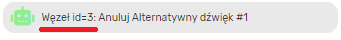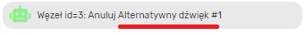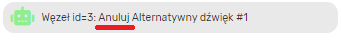 - Węzeł (ikona zielonego robota) pokazuje: