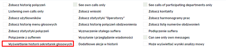 Dostęp do tej strony dla operatorów i kierowników (managerów) regulujesz w zakładce użytkowników, korzystając z ustawienia „Przegląd historii robotów głosowych”.