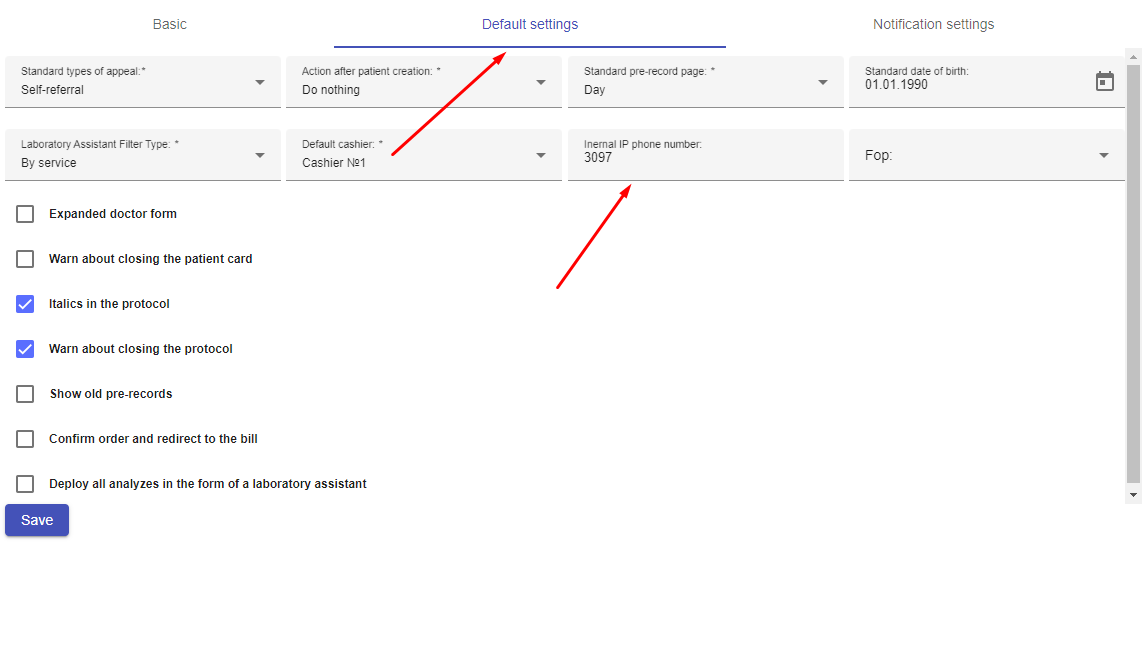 4. Dodaj wewnętrzny numer linii SIP, aby dzwonić bezpośrednio z Clinica Web: