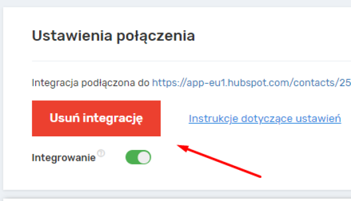 12. Dla odłączenia integracji swojego konta UniTalk z HubSpot kliknij przycisk „Usuń integrację,” a następnie w oknie potwierdzenia kliknij „Usuń integrację”.
