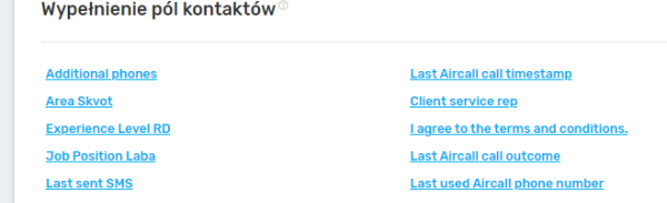 6. Wypełnij pola kontaktów i umów, które będą wypełniane danymi z UniTalk podczas tworzenia.