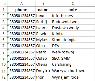 Numery muszą być w formacie międzynarodowym (+380… lub 380… ). Spacje i znaki niecyfrowe są usuwane automatycznie;