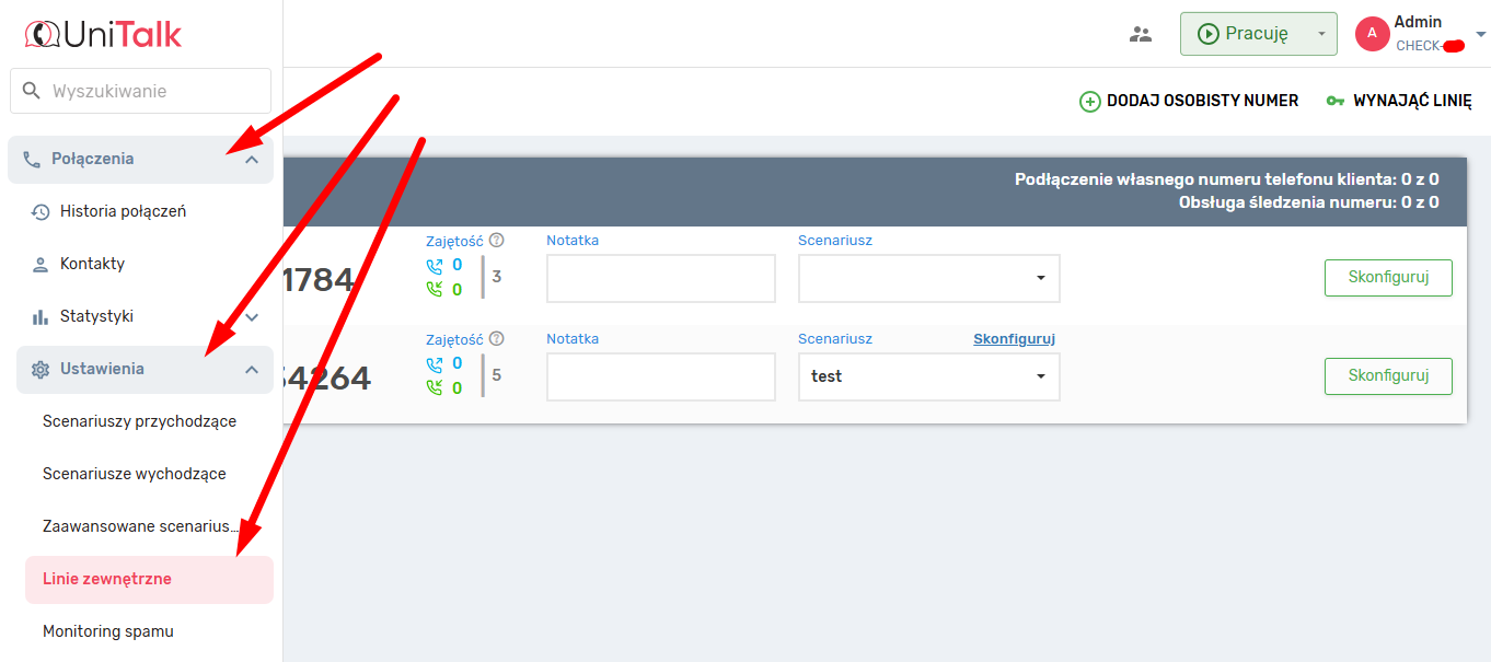 Dzwonimy na jeden z numerów Twojego projektu. Wszystkie numery projektu można obejrzeć w dziale z Linie Zewnętrzne.
