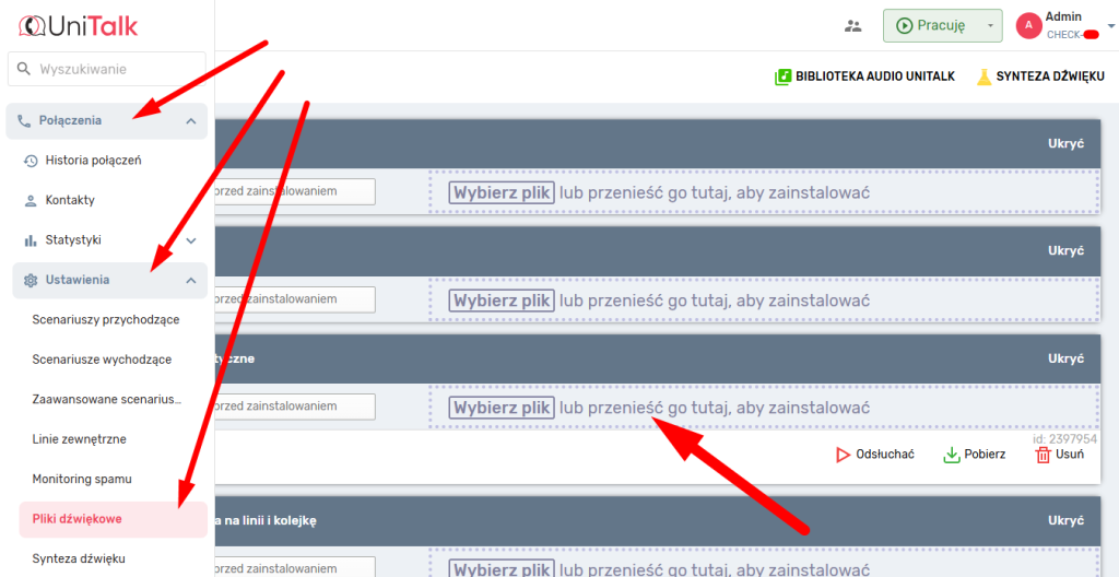 Po utworzeniu i pobraniu pliku audio prześlij go do biblioteki UniTalk (jak to zrobić, patrz wyżej).