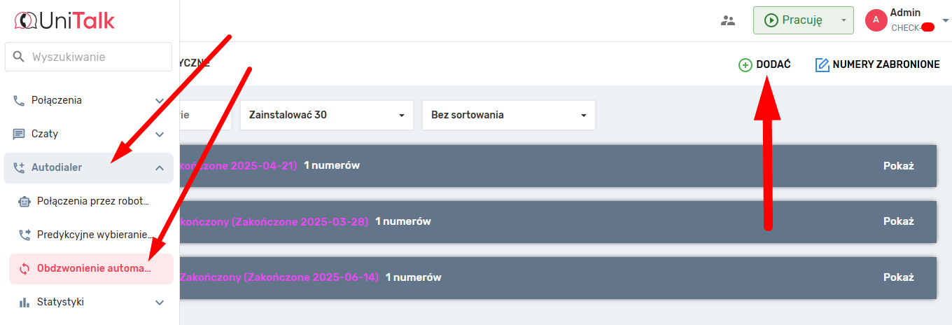 Automatyczne dzwonienie rozpocznie się w ciągu kilku minut lub w najbliższym czasie zgodnie z harmonogramem. Zalecamy obserwowanie obciążenia konsultantów przez cały czas wykonywania połączeń i zmiany ilości wątków. Jeśli jest to trudne lub niemożliwe, możesz skorzystać z Gwarantowanego wybierania numerów lub skontaktować się z nami.