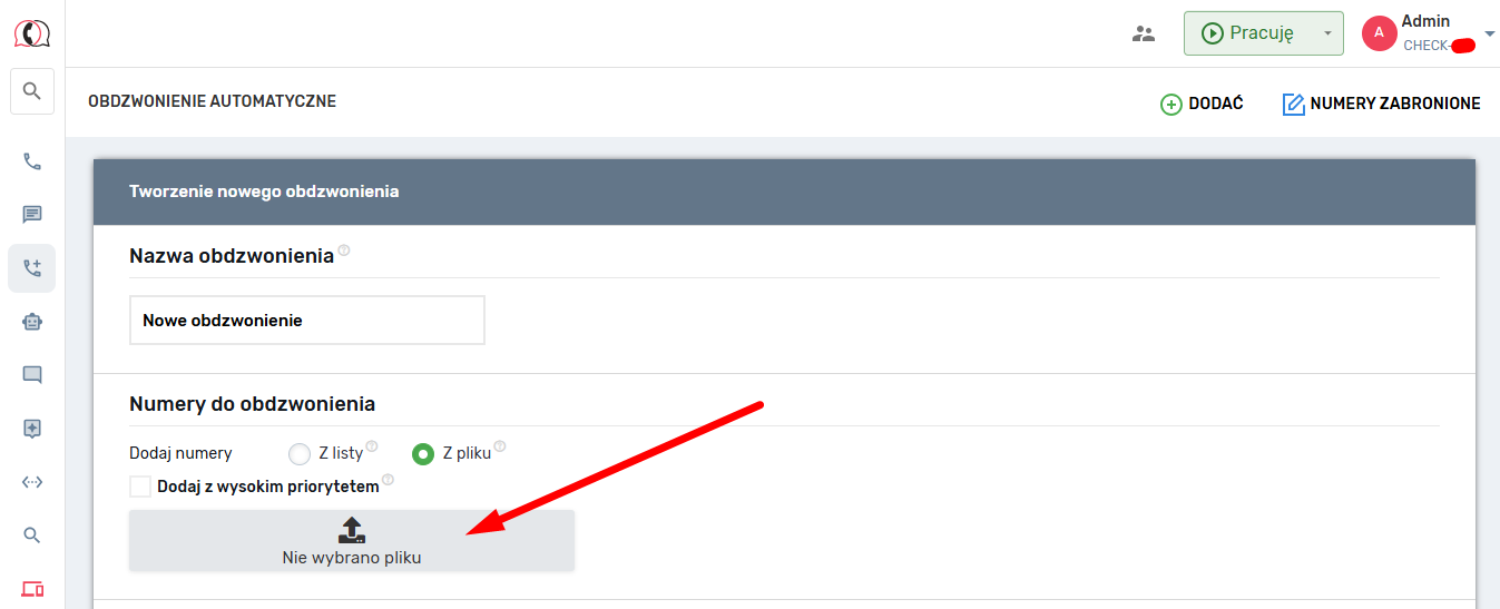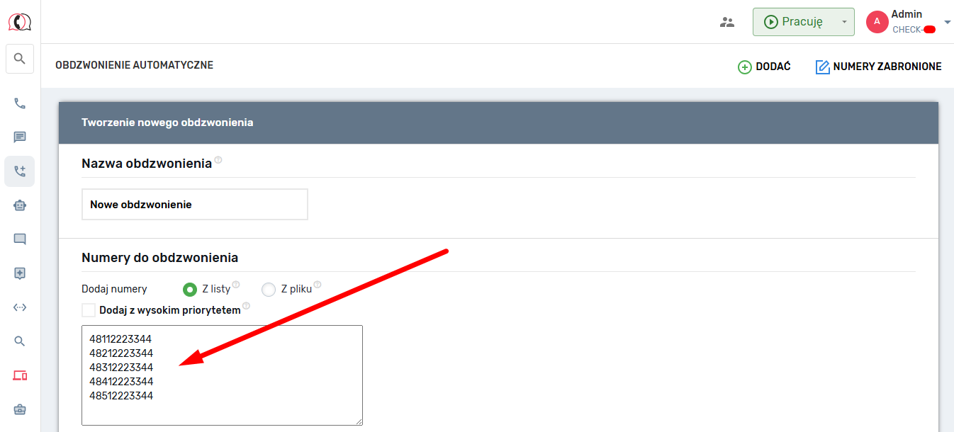 Kontakty można dodawać z priorytetem lub bez. Jeśli włączysz ustawienie „Z wysokim priorytetem”, a następnie załadujesz listę numerów, wszystkie numery z tej listy będą traktowane priorytetowo i zostaną one przywołane w pierwszej kolejności. Jeśli dodasz numery bez ustawienia „Z wysokim priorytetem”, zostaną dodane na końcu listy.