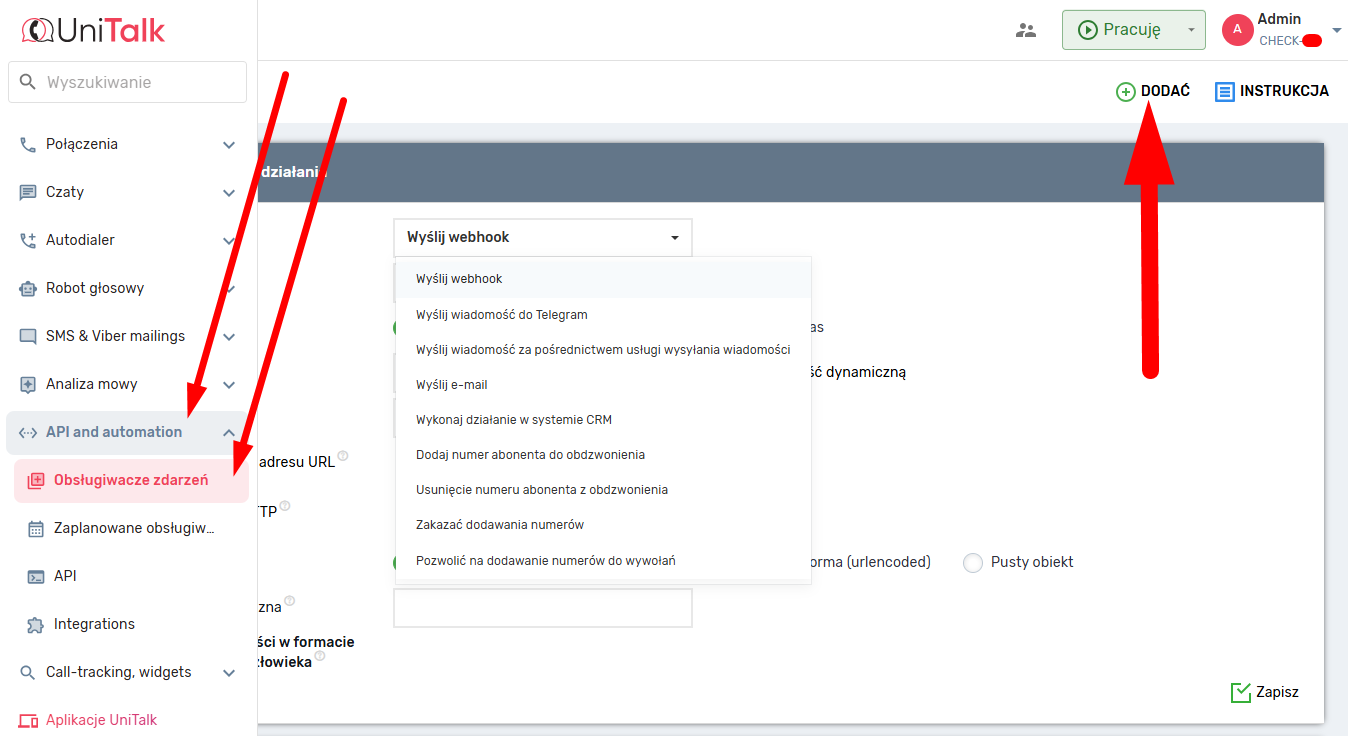 Przystępujemy do przygotowania konfiguracji automatycznego dzwonienia.