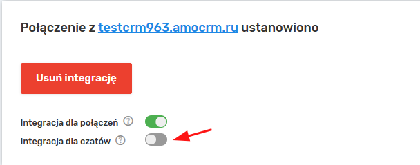 Jeśli potrzebujesz integracji tylko dla jednego z obszarów (na przykład tylko dla czatów), włącz odpowiedni przełącznik i wyłącz drugi.