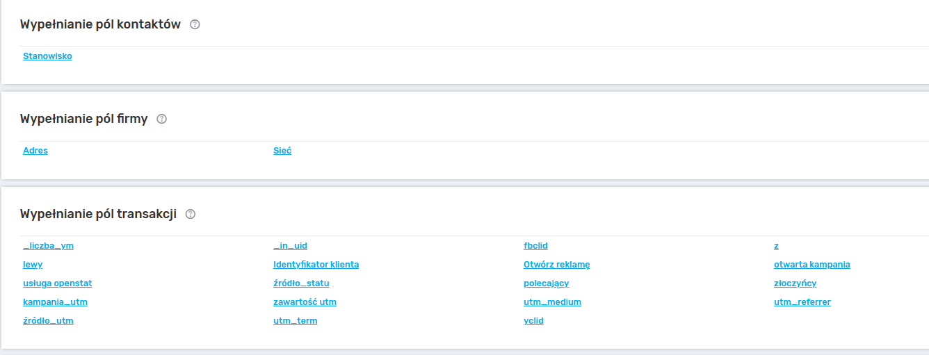 2. Wypełnianie pól kontaktów, transakcji, leadów