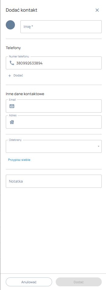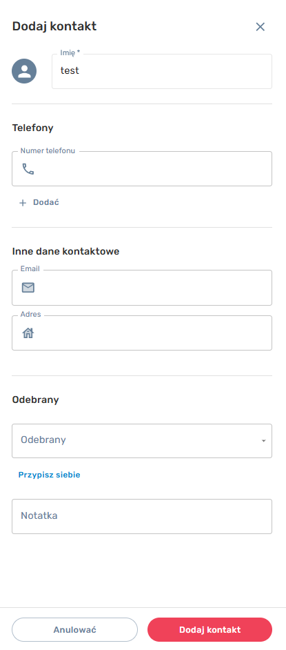 Po wypełnieniu danych – kliknij „Dodaj kontakt”.