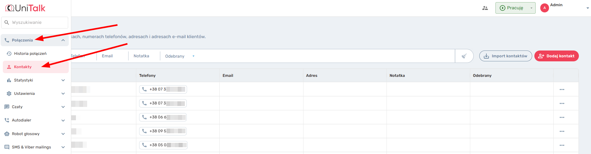 JAK KORZYSTAĆ Z SEKCJI „KONTAKTY” UNITALK