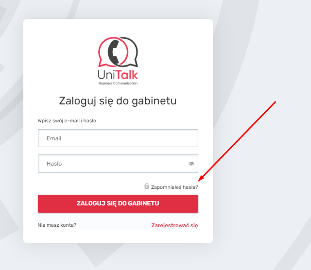 Jeśli zapomniałeś hasła umożliwiającego wejście na specjalne konto UniTalk, podczas logowania musisz wybrać: