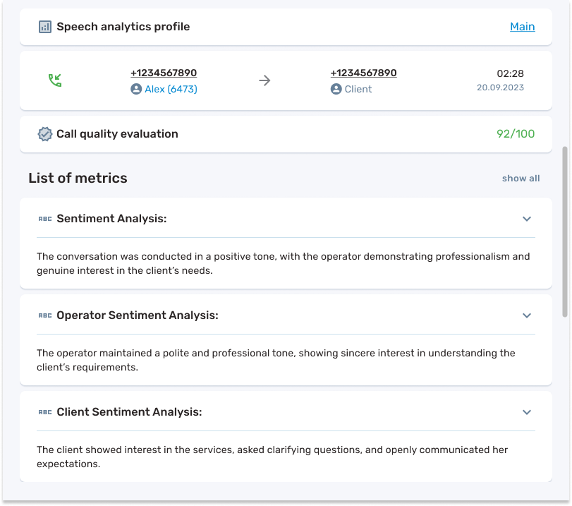Jedną z kluczowych zalet Analityki mowy jest wykrywanie problematycznych momentów w komunikacji. System oznacza rozmowy o podwyższonej emocjonalności, pomagając menedżerom szybko reagować na negatywne opinie i terminowo rozwiązywać trudne sytuacje.
