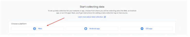 4. Wybierz platformę, na której chcesz zbierać dane. W tym przypadku wybierz opcję Sieć, aby pracować z witryną.