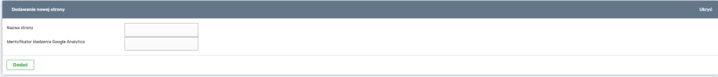 3. Po dodaniu nowej witryny do śledzenia w systemie UniTalk otwiera się menu, w którym należy podać nazwę witryny (lub dowolny identyfikator) oraz identyfikator śledzenia Google Analytics, który należy skopiować ze strony usługi Google Analytics.