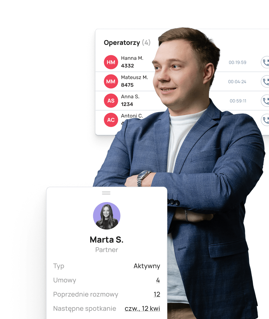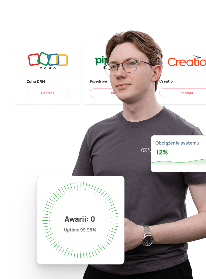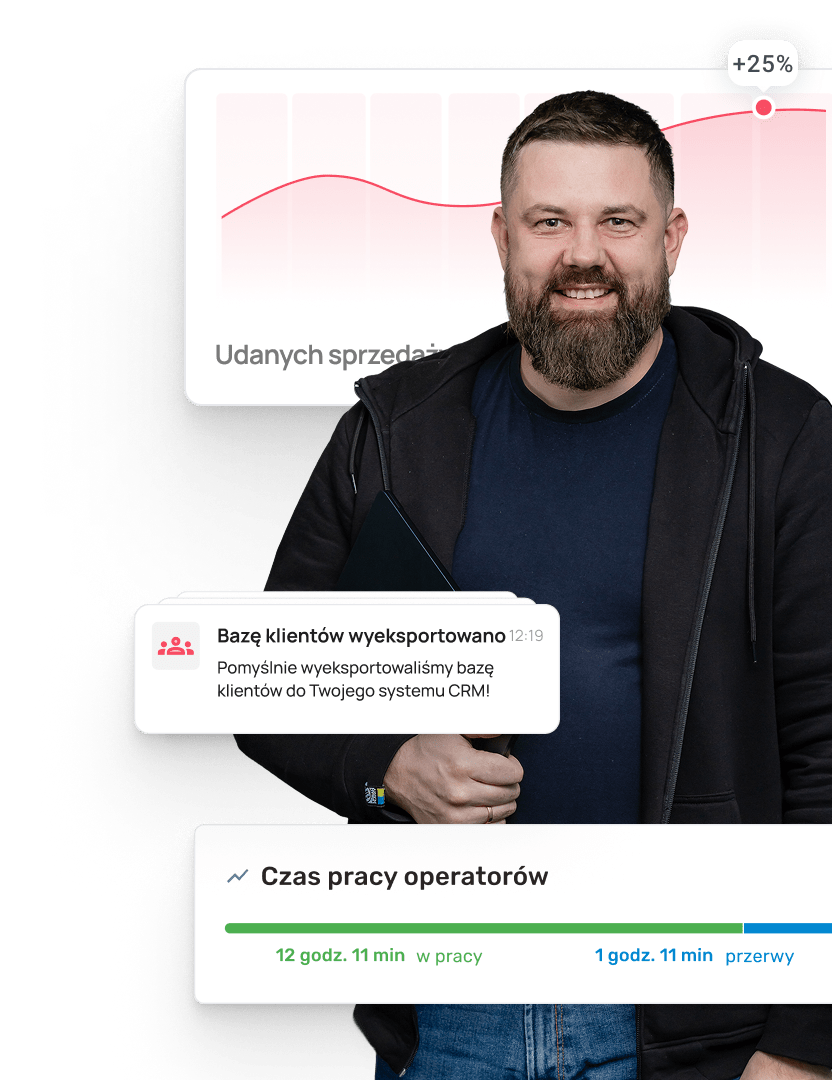 - Żadnego chaosu między CRM, telefonem i czatami — wszystko w jednym miejscu dzięki odpowiednio skonfigurowanej Wirtualnej Centrali